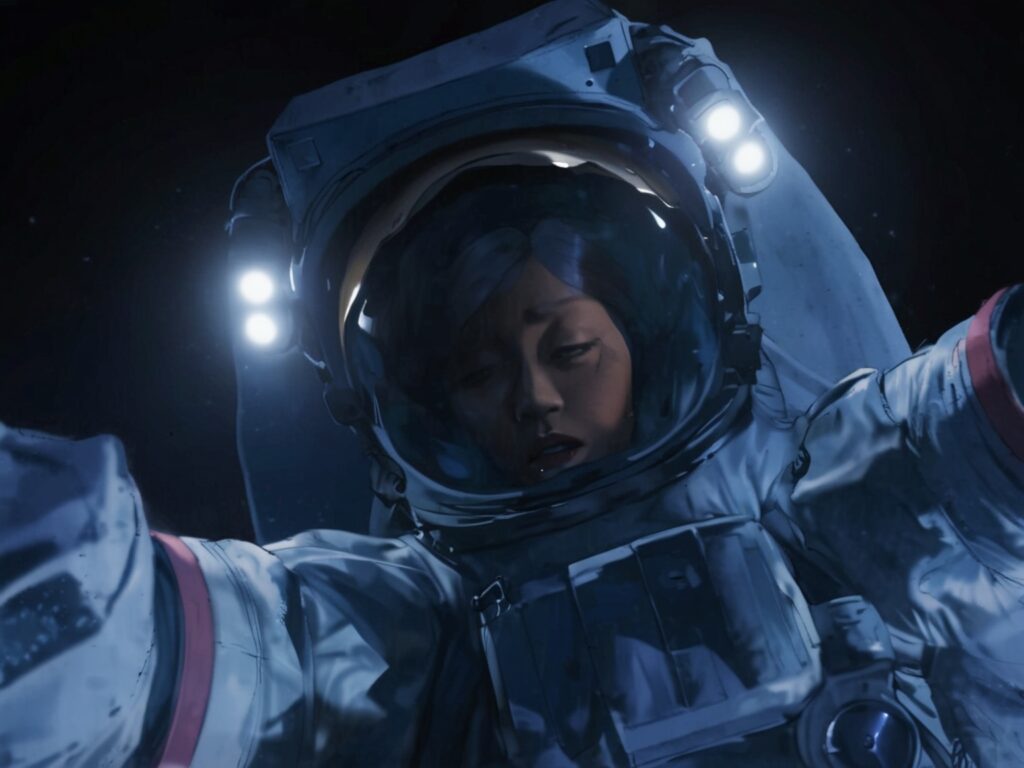 Speaking of red flags, let’s talk about Ryong’s impulsive hero complex. When Eve embarks on a dangerous spacewalk to repair solar panels, disaster strikes. A tear in her glove leaves her vitals plummeting, and Ryong decides to save her despite zero training and the very real risk of dying in the attempt.