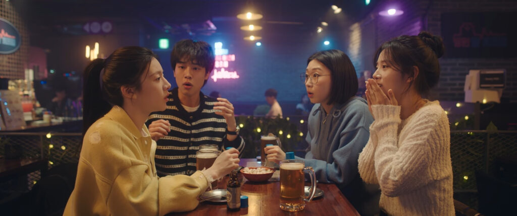 Suddenly, everyone knows. Yet they vow silence. Of course, within hours: Nam-kyung mentions it in passing. Sa-bi blurts Yi-young’s name to Professor Ryu. Jae-il gleefully gossips with Dong-ho—only to learn Dong-ho already knows. Meanwhile, oblivious Joo-young and Seung-won mistake cuddling for combat. Cue collective face-palm.