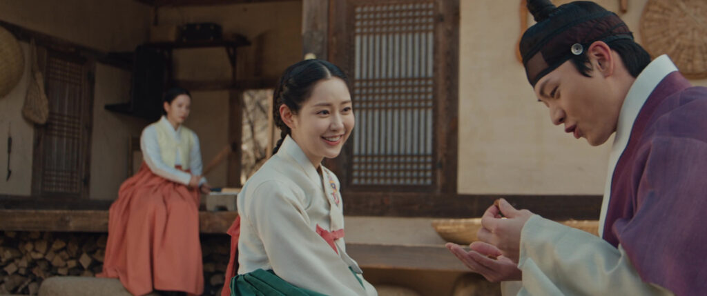 Surprisingly, the king—grateful for his daughter’s rescue—starts talking to Kang‑cheol in formal speech. It feels almost comical to watch the rough‑and‑tumble imoogi stumble over honorifics. Yet it also underlines his growing respect.