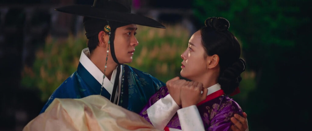 Still, he can’t let go. So he tests her with a memory game: “What happens if you catch a falling petal?” Dal-Yi answers, “You become the person who caught the petal.” Not exactly poetic, but bold. The original crown princess’s answer? “Your first love will come true.” Ouch.