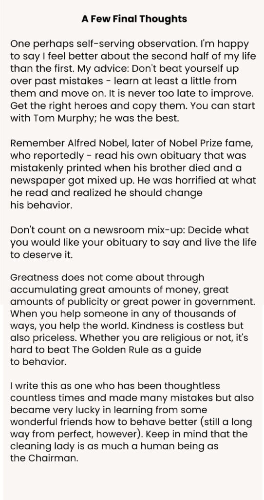 He taught us that compounding doesn’t just apply to money — it applies to kindness, humility, and gratitude. Every smile, every act of generosity, every bit of time you give away compounds into something much bigger than yourself.