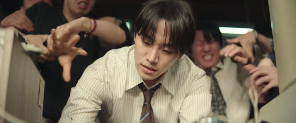 So the team decides to break into his office to snoop. Naturally, they run into Seon-taek, who is also snooping. Then chaos erupts — fights, chases, dramatic screams — it’s practically a low-budget Avengers crossover.